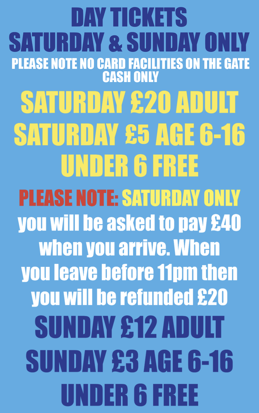 PRE BOOKED CLUBS ONLY gates open at 12 midday. club camping is fully booked.